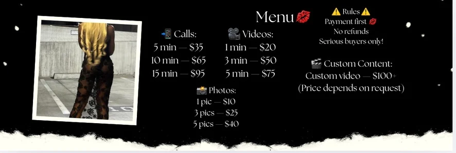 Cock Rating, Erotic Dance, Blowjob, Dildo or Vibrator, Facesitting, Fingering, Foot Fetish, Footjob, Oil Show, Sex Toys, Smoking, Handjob, Heels, Masturbation, Striptease, Topless, Twerk